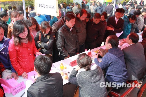 2010年2月22日,安徽徽州区举行春节后首场2010“春风行动”暨返乡人员就地就业招聘大会。共有58家用工单位入场招聘,提供营销策划、服装纺织、财务管理、机械制造和旅游酒店等行业的5120个就业岗位。在该地区历届招聘会中,此次招聘大会参会人数最多、招聘岗位最全、用工范围最广。中新社发 方也广德 摄