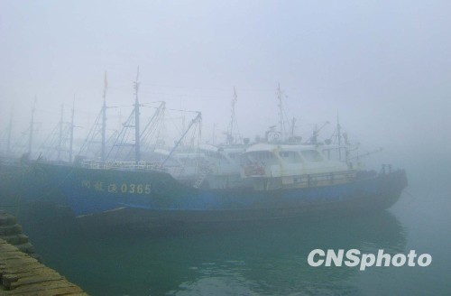 2月23日晨,福建省气象台发布大雾黄色预警信号。当日早上,大雾弥漫福建沿海,部分地区能见度不足百米。中新社发 胡永平 摄