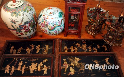 2月23日,虎年元宵节将至,近20件以民间闹元宵丰富多彩民俗活动为主题的清代花灯、瓷罐、木板漆画、木偶等罕见藏品,现身福州。这批以民间闹元宵民俗活动为主题的清代罕见藏品,是福建一知名收藏家多年潜心收藏的,其中两盏四面玻璃各绘4名戏剧人物,从衣着到表情都刻画得十分细腻,玻璃框上镶嵌着镏金装饰物的“古董花灯”难得一见。中新社发 刘可耕 摄