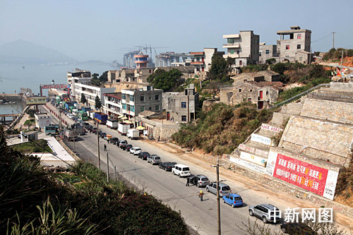 推进福州(平潭)综合实验区开发建设,已成为福建当前加快海西建设的重中之重。然而,平潭岛的对外交往如今依然只有轮渡一条通道,改善交通由此成为福州(平潭)综合实验区开发建设的当务之急。图为2月24日,在平潭轮渡码头排队的车辆排到了几公里之外。