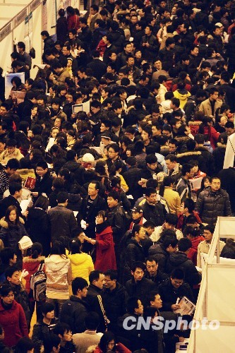 2010年2月25日,“2010年山东半岛城市群(潍坊)春季人才交流(大中专毕业生就业)暨春风行动招聘大会”在山东潍坊拉开帷幕,来自山东半岛地区的500余家企事业单位入会招贤纳才,提供岗位3万余个,吸引了近4万余人入会求职择业。中新社发 张驰. 摄
