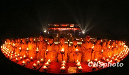 2月27日,虎年元宵节前夜,四川峨眉山市“万盏明灯供普贤”大型祈福活动在大佛禅院广场举行,来自成都、眉山及乐山本地的数万市民点亮盏盏明灯,许下新年心愿,为祖国祈福,为亲人祈福新年平安吉祥。中新社发 刘忠俊 摄