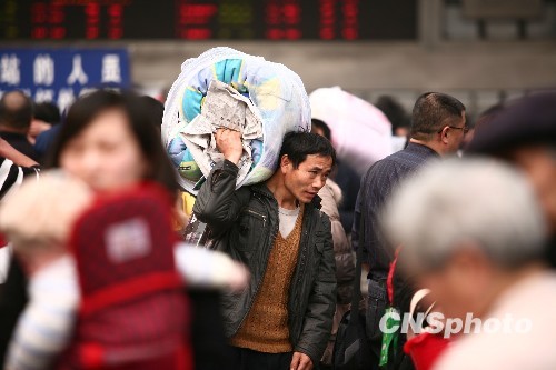 2月28日,随着农历虎年春节过去,成都各大车站客流量明显加大,据成都铁路部门工作人员透露,今明两天成都火车站将迎来节后客流的最高峰,务工流、返校流成为主体,为此铁路部门已经加开了临客应对。图为来成都务工人员正走出车站。中新社发 张浪 摄