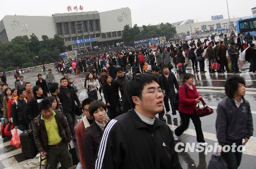 3月1日上午,杭州火车南站广场前等候公交车的旅客排起了长长的几支队伍。元宵节后出现外出务工的民工流、返校的学生客流和各地度假返城客流三股叠加,迎来新的客流高峰。中新社发 张祥荣 摄
