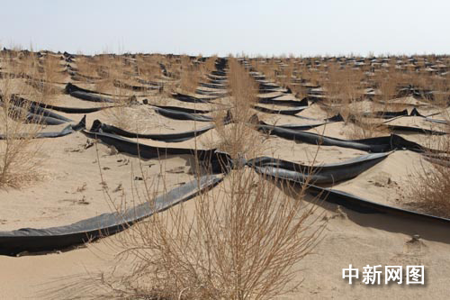 图:甘肃民勤治理荒漠化 今春人工造林开始(2)