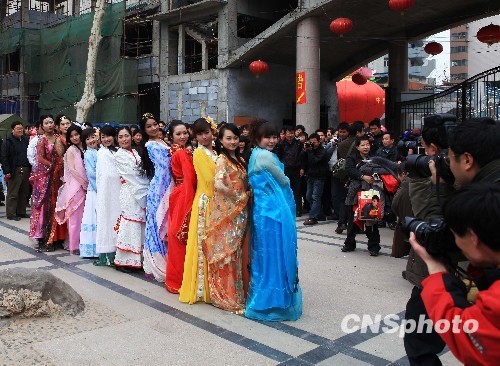 3月7日下午,近300名来自全国各地的摄影师齐聚郑州人民公园参加“梦回汉唐”古装美女拍摄活动,以庆祝“三八”国际妇女节。 中新社发 郑劲松 摄