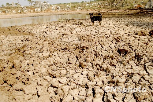 3月8日下午,昆明干旱灾区石林周边村庄。据悉,干旱已造成云南省3065.6万亩农作物受灾,占已播种面积的83%,其中成灾2167.4万亩,绝收814.1亩;新造林地受灾面积1078万亩,报废256万亩,农业直接经济损失已达83.4亿元。大量山区人畜饮水和城镇居民生活用水出现严重困难,全省有530万人、295万头大牲畜饮水困难。中新社发 田洪 摄