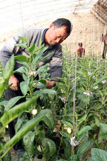 国务院总理温家宝先后十多次批示和指示,绝不让民勤成为“第二个罗布泊”。民勤县位于甘肃省西部,三面临沙,被腾格里和巴丹吉林两大沙漠半包围。为遏制荒漠化,当地政府采取了多种措施节水,其中包括大力发展日光温室,实践证明,这种方式既有效节水,还能有效帮助农户增加收入。张玉玺 摄
