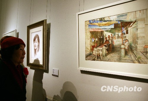 3月14日,正值中国与新加坡建交20周年之际,新加坡知名华人画家范少华携其50多幅绘画作品在北京中国美术馆推出个人画展。著名画家徐悲鸿的夫人、徐悲鸿纪念馆馆长廖静文等专程前来为范少华北京个展开幕剪彩、捧场助兴。中新社发 孙自法 摄