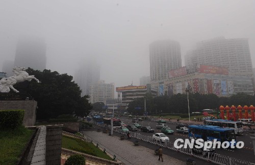 3月15日上午,福建福州市区被浓雾笼罩,位于市区的五一广场大雾弥漫。中新社发 刘可耕 摄