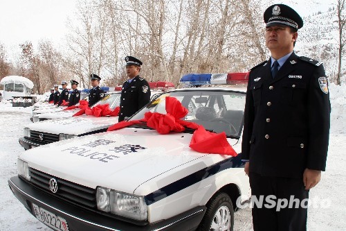 3月16日,新疆阿勒泰市公安局为基层派出所配发7辆勤巡逻车辆,用于保障的日常警务工作。中新社发 唐晓波 摄