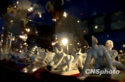 3月18日,福州一民营医院举办性文化展。当日,百余件珍贵性文物与观众见面,展出的性文物从原古时代的交媾土塑到民国时期的性爱石雕等,跨跃数百年历史。中新社发 王东明 摄