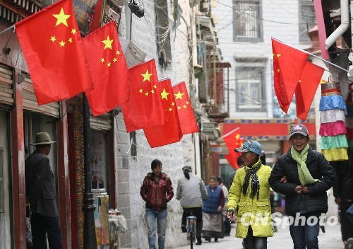 拉萨街头挂满国旗 迎农奴解放纪念日