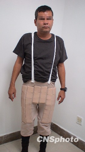 广州海关3月30日透露,一外籍男子携毒2959克被该海关所辖白云机场海关查获,这是该海关近年来查获的最大一宗人身藏匿毒品案,也是该海关首次查获贩毒分子以特制的内衣藏匿走私毒品的案件。中新社发 王畅 摄