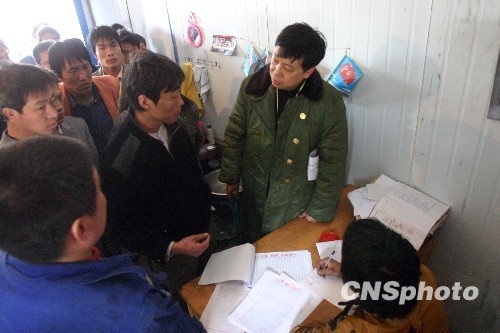 4月1日,“3·28”山西王家岭透水事故进入第五天。王家岭矿区为矿工发放当月工资。中新社发 张云 摄