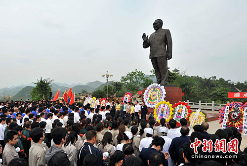 4月2日,清明节前夕,革命老区——广西百色市平果县各界近1000人在邓小平纪念公园隆重集会,深切缅怀邓小平。1929年12月11日,邓小平成功领导和发动百色起义,成立了中国工农红军第七军和右江苏维埃政府。中新社发 罗郅肯 摄