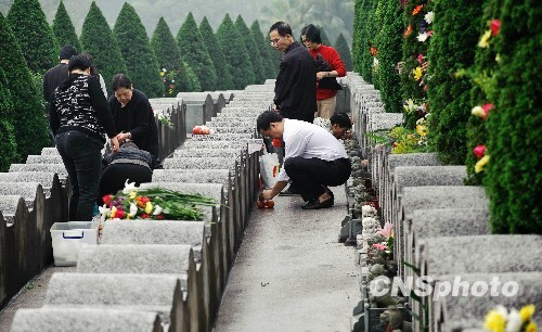 4月5日,大批广州市民来到银河公墓拜祭先人,现清明节拜祭高峰, 警方在附近道路实行交通管制。中新社发 贾朔 摄