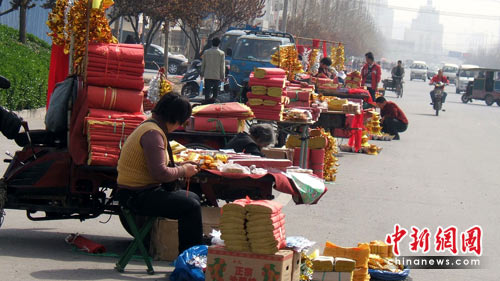 中新网郑州4月5日电(记者吴扬)清明节到了,郑州的许多街道边都能见到销售祭祀用品的商贩,而个别市边路段更是冥品商贩云集之处,几十家冥品商贩连成一片列队销售,颇为“壮观”。