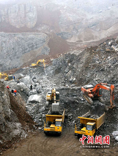 4月9日,四川省峨眉山市乐都镇顺江采石场垮滑山体救援进入第三天,垮滑现场已清运泥石10万立方,1、2号救援通道的成功打通,指挥部又紧急调集了12台50吨的运输车投入清运垮塌泥石,使现场清运进程加快。中新社发 刘忠俊 摄