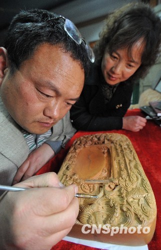 2010年4月11日,澄泥类唯一入选首批国家级非遗目录的绛州澄泥砚制作工艺传承人,中国文房四宝艺术大师蔺涛加紧绛州澄泥砚制作工艺演练,为5月19日上海世博会“山西活动周”文艺展示活动国家级非遗项目传习展示《古风晋韵》做精心准备。