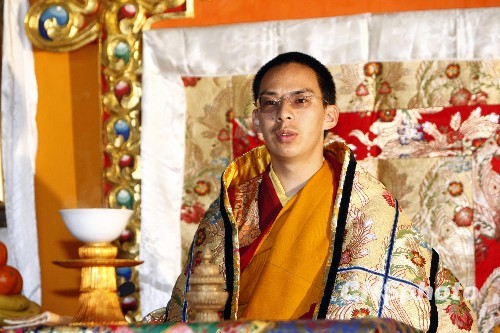 4月20日上午9时许,十一世班禅额尔德尼·确吉杰布在北京西黄寺,为青海玉树地震遇难同胞举行超度法会。中新社发 杜洋 摄