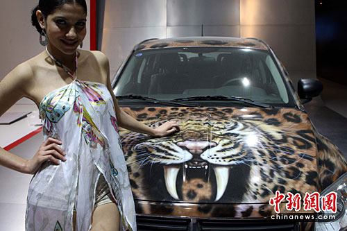 四月二十二日,如火如荼的北京车展开幕在即,各家厂商为了吸引消费者驻足花样迭出。克莱斯勒展台大打汽车彩绘牌,具有正宗道奇家族血统的汽车,精心绘制出极具特色的彩饰加之美女的陪伴,可谓是时尚与绝酷的最佳结合。中新社发 任海霞 摄