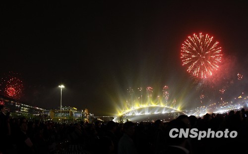 2010年4月27日晚,上海举行世博会开幕式焰火演练。中新社发 盛佳鹏 摄