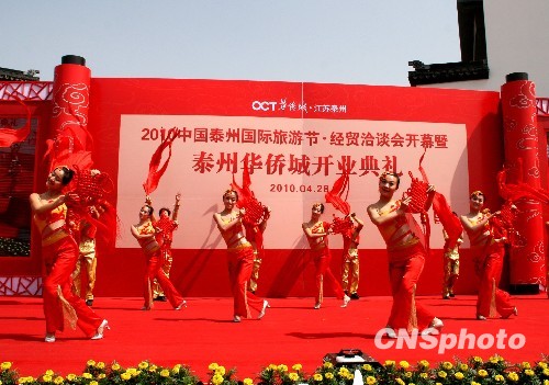 4月28日,2010中国泰州国际旅游节·经贸洽谈会开幕式暨泰州华侨城开业庆典同时在泰州华侨城举行。本届旅游节突出参与上海世博主题,融合人文民俗世博元素 ,缔造长三角生态旅游新地标——泰州华侨城。从4月2日开始至5月6日结束。中新社发 崔佳明 摄