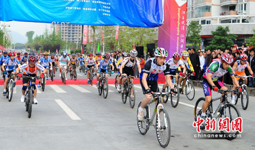 为迎接五一国际劳动节,29日,重庆举办了首届职工环城自行车赛,该市208名自行车爱好者在三峡库区云阳新县城展开了激烈角逐。