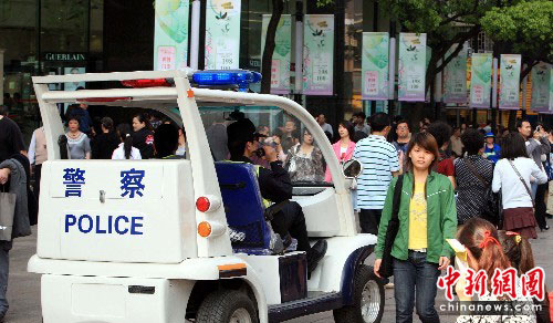 4月30日,上海世博会举行开幕式前,一辆新型警车在市区巡逻。中新社发 潘索菲 摄