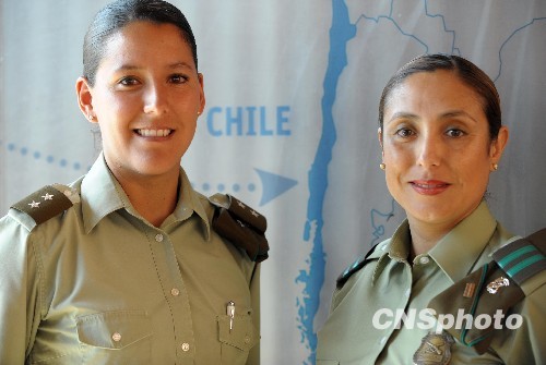 5月2日,一对智利警花亮相上海世博园智利国家馆,接待海内外游客。中新社发 陈文 摄