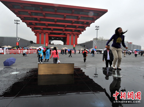 5月5日,上海世博会迎来开园五天来首个雨天。中新社发 贾国荣 摄