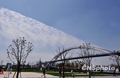 5月7日上午,上海世博会卢浦大桥天空出现风卷残云的景象。中新社发 贾国荣 摄