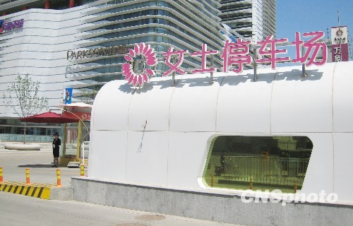 5月10日,在石家庄中山西路拍摄的“女士停车场”。该停车场专为女士司机服务,内部装饰时尚美观,空间较大,而收费却和一般停车场相同。中新社发 陈占五 摄