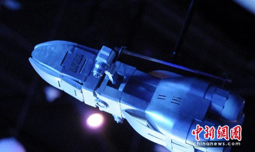 中国未来的“太空卫士”航天器模型亮相5月上海世博会。“太空卫士”是世界著名科幻小说家克拉克提出的概念航天飞船,它旨在保护地球免遭其他行星和太空武器的毁灭性袭击,目前只有美国开始了前期研发。中新社发 贾国荣 摄