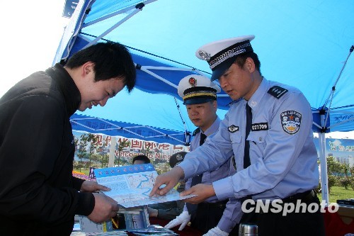 高速公路宁波北出口是上海进入宁波的“北门户”,是重要的“世博迎宾路”。世博会“信息化与城市发展”主题论坛本月也将在宁波举行。日前,“精彩世博,为您引航”服务站揭牌启动暨迎世博交通服务中队成立仪式在宁波北高速出口处举行。据了解,这样的服务站在浙江省内还是首家。中新社发 何蒋勇 摄