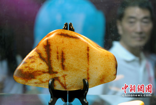 近日,在第六届中国(深圳)国际文化产业博览交易会上,顺风翠玉行藏品——重达4.8公斤的新疆和田羊脂玉仔料(原石)亮相展示,身价超过一千万元人民币。 中新社发 陈文 摄