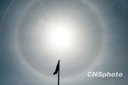5月20日中午,河南省漯河市上空出现日晕景观。中新社发 李慧宇 摄