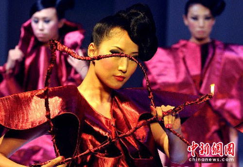 5月20日晚,西安工程大学福州服装学院2010届服装设计大赛在福州华丽登场。此次大赛暨毕业设计的主题为“奇迹”。根据大赛主题,今年入围的23套设计作品既有鲜明民族性又有强烈时代特征,反映出当代大学生蓬勃的激情与张扬的个性。本次大赛选送了在全国各项模特大赛中获奖的优秀模特,其中多数曾代表该服装学院前往法国、日本、新加坡等地演出。中新社发 刘可耕 摄