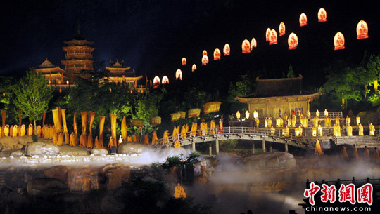 日前,在河南嵩山少林寺,由谭盾担纲艺术总监和音乐原创,少林寺方丈释永信为顾问的《禅宗少林·音乐大典》成为中外游客观光少林寺的又一壮丽景观。《禅宗少林·音乐大典》是大型户外实景文化演出项目,演出设计在登封西十公里的大仙沟。演出规模宏大,音画一体,共分为5个乐章,近600人全情演绎,少林僧侣现场唱诵,佛乐禅音直指心性。中新社发 钱兴强 摄