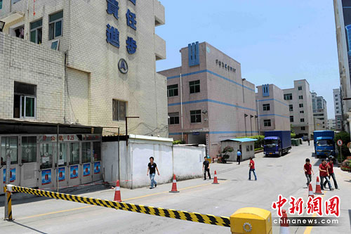 5月25日晨,富士康科技集团观澜园区华南培训中心一名员工坠楼死亡。这是今年以来该集团第11宗员工坠楼事件,共造成9死2重伤。中新社发 陈文 摄