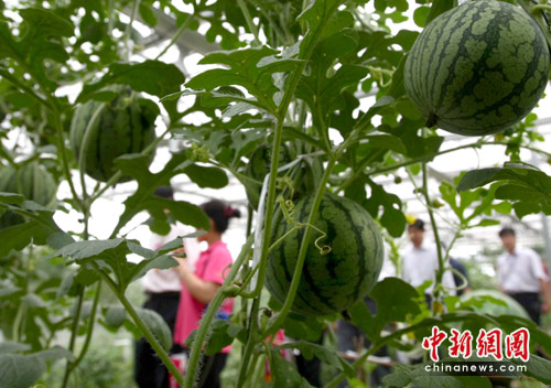 5月28日,第22届北京大兴西瓜节正式开幕。此次西瓜节除举办瓜王擂台赛外,大兴区还精选了22个绿色农园、12条特色旅游线路和6条精品自驾游线路,让民众到瓜乡狂欢。期间,大兴区还将与亦庄举行招商信息发布会,重点推介两区20个重点招商项目。中新社发 富田 摄