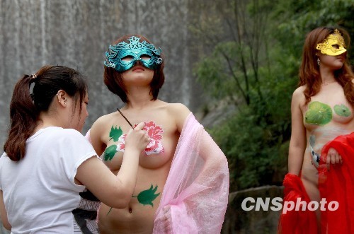 5月29日,在安徽黄山脚下的芙蓉谷景区首次上演“人体彩绘行为艺术情景秀”活动。中新社发 方也广德 摄