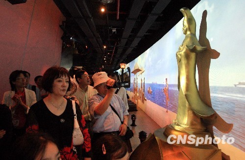 5月30日,中国新闻社组织来自亚洲、美洲、欧洲和大洋洲15个国家的20家境外有影响的华文媒体高层,赴上海集中采访报道世博会盛况,图为媒体人员参观采访澳门馆。中新社发 潘索菲 摄