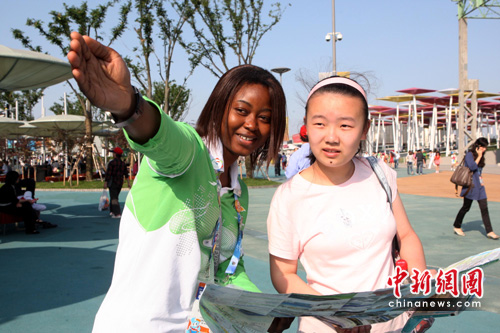 5月30日,来自非洲马里、现就读于同济大学的留学生泰雅当选世博志愿者之星。泰雅在世博志愿者的岗位上,用流利的中文热情的为游客服务,受到大家的赞扬。中新社记者 汤彦俊 摄
