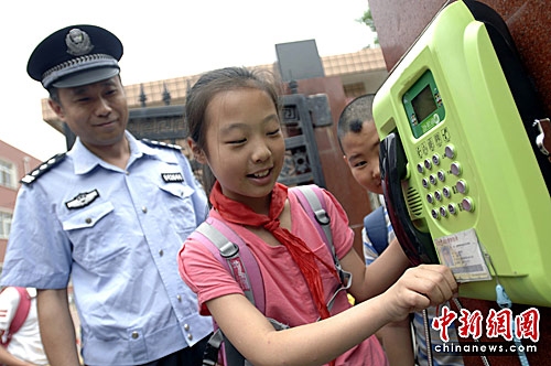 “您的孩子已安全到校,请放心。”这是北京丰台区和义学校的学生在使用“校讯通”智能卡刷卡进入校门后,家长手机上收到的短信息。实现家长第一时间掌握孩子进出校门的信息。据悉,这一模式近日正式在整个丰台区进行推广。中新社发 杨阳 摄