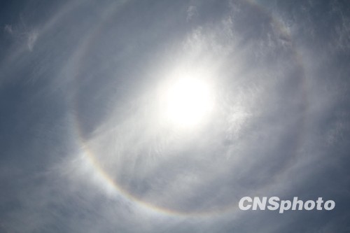 5月31日11时左右,山西省原平市上空出现日晕。中新社发 王斌田 摄