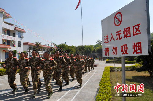 5月31日是世界无烟日,云南省西双版纳傣族自治州边防支队设置无烟区,通过教育引导,倡导抽烟官兵集体戒烟,追求健康的生活。