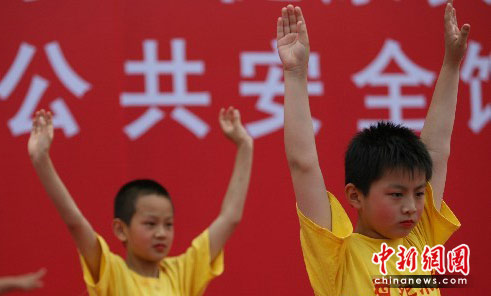 6月1日,北京西苑小学的学生表演舞蹈《中国功夫》。当日,中国校园健康行动——学生健康安全教育行动关爱计划启动。关爱计划提出,针对校园安全问题,要以少儿安全教育为重。中新社发 苏丹 摄