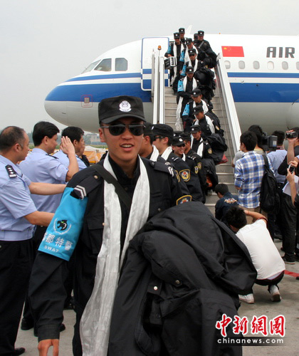 2日上午10时55分和11时25分,满载185名刚刚完成玉树救灾任务成都特警的两架急救包机CA4296和CA4298航班先后降落在成都双流机场。